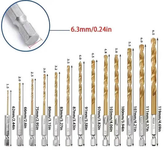 Комплект от 6 свредла, 6 размера M3 M4 M5 M6 M8 M10, шестоъгълна опашка