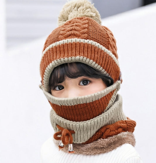 Комбинирана шапка 3 в 1 за момичета (шапка+маска+шал)