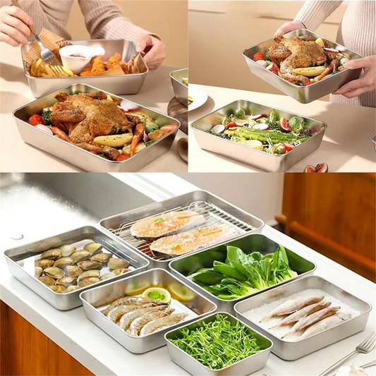 Поднос за храна от неръждаема стомана (Комплект от 2 броя)