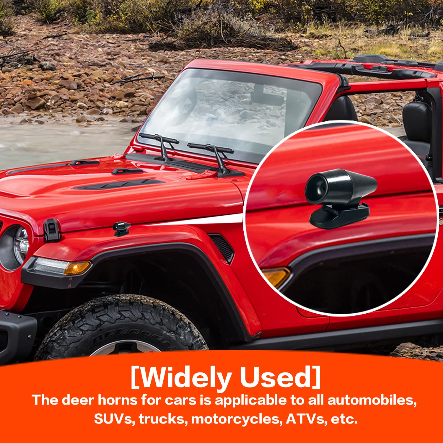 - Полезен инструмент: въздухът, преминаващ през свирката на елени, ще произведе звук/ултразвук, този вид звук може да предупреди елени, лосове, лосове, антилопи и кенгуру при приближаване на превозни средства, като ефективно избягва сблъсъци между елени и превозни средства.
