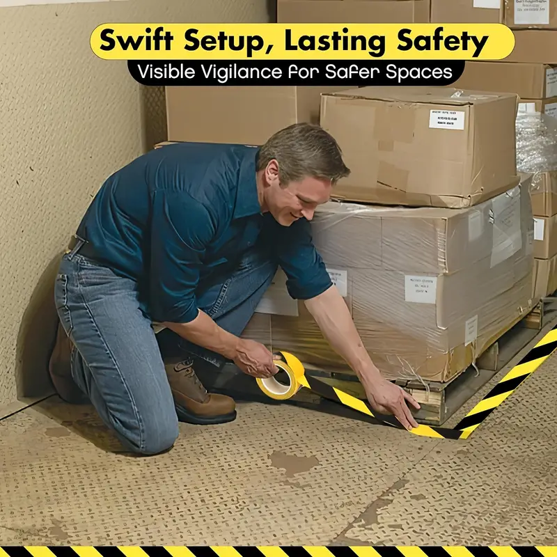 Идеален за: Проектиран е за маркиране, разграничаване и идентифициране на опасни зони като строителни площадки и често се използва като предупреждение за безопасност. Използва се и за маркиране на пътеки, пасажи, спортни зали, паркинги, гаражи, фабрики, складове и др.