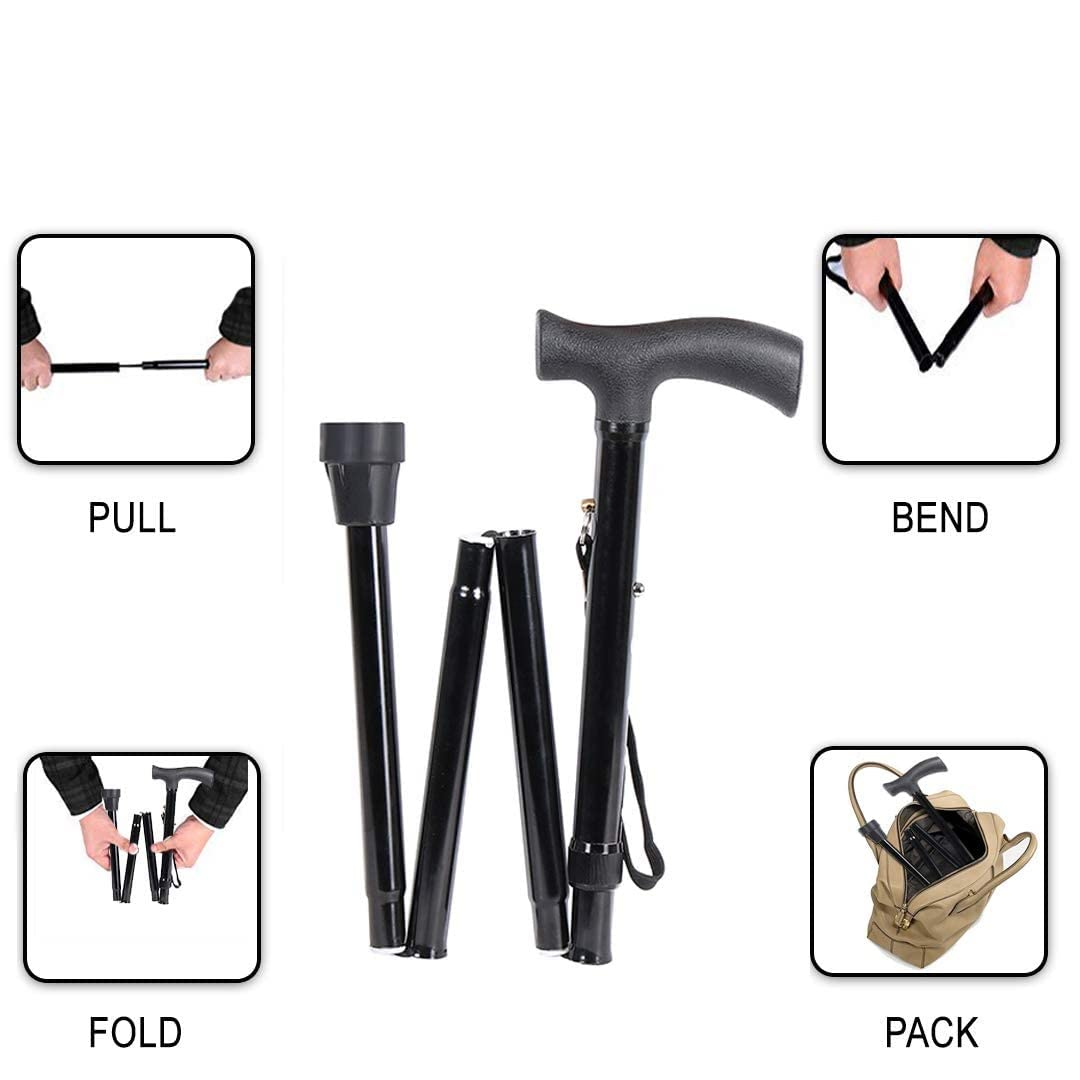 - Бастунът предоставя удобна опция за тези, които се нуждаят от помощ, а сгъваемият бастун се заключва лесно и сигурно, за да осигури допълнителна стабилност при ходене по всякакви повърхности.