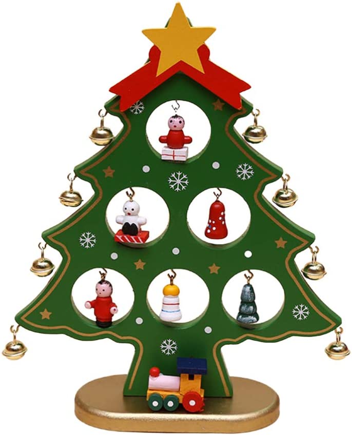 - Мини дървена декоративна коледна елха за детско домашно парти, подарък за детска градина