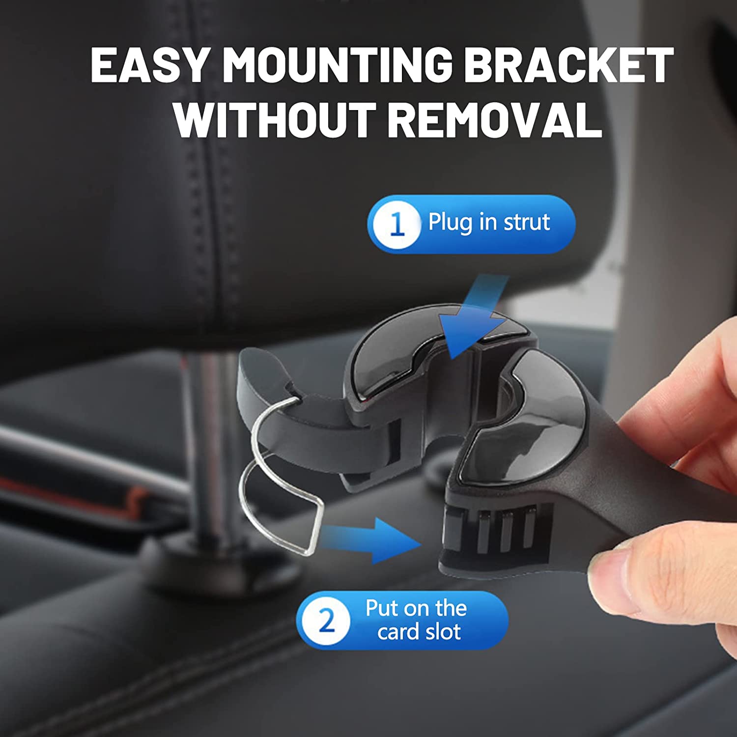 - 【Лесно инсталиране】: Куките за облегалката за глава на автомобила се монтират лесно. Не са необходими лепило или инструменти. Няма нужда да премахвате облегалката за глава. Отнема само 30 секунди, за да ги инсталирате успешно. Освен това се премахват лесно, когато не са ви необходими.