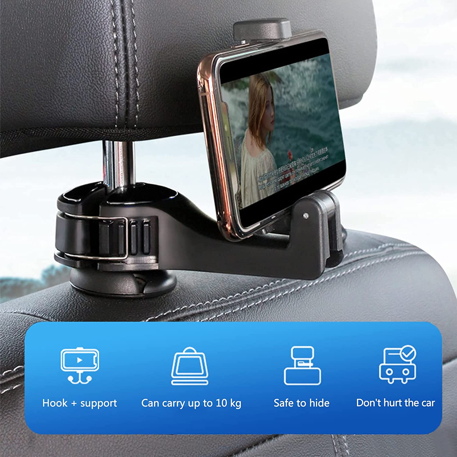 Скрита кука за облегалка за глава на кола с поставка за телефон (Комплект от 2 броя)