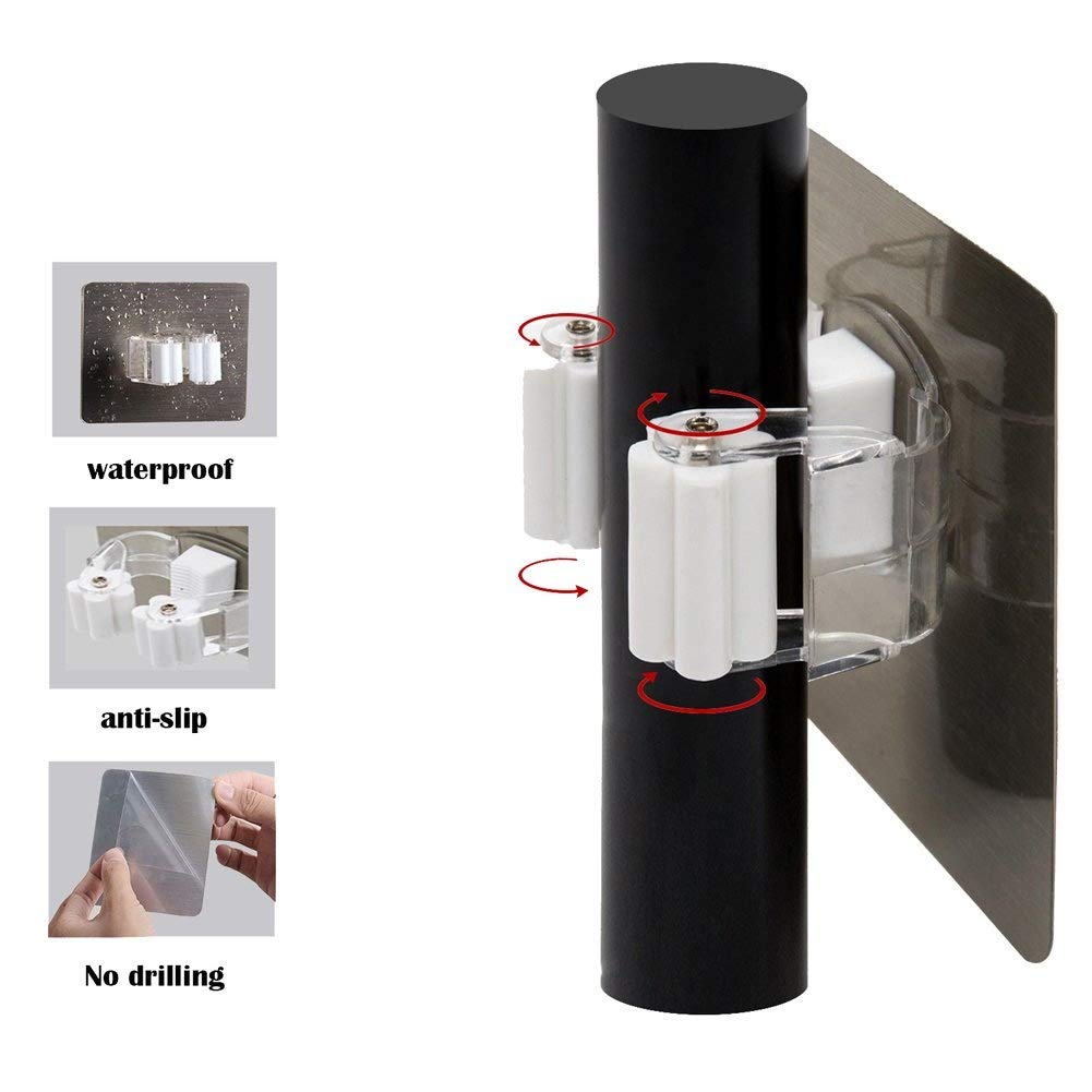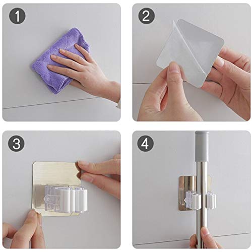 【ЛЕСЕН ЗА МОНТИРАНЕ】 Има лепило на гърба на държача за моп за метли, няма нужда да пробивате дупки за монтаж и не е нужно да се притеснявате, че стикерите ще повредят стената или тавана. Преди употреба почистете повърхността на стената, залепете държача за моп, натиснете за 10 секунди, за да изстискате въздуха и можете да използвате здравия и издръжлив държач след 24 часа.