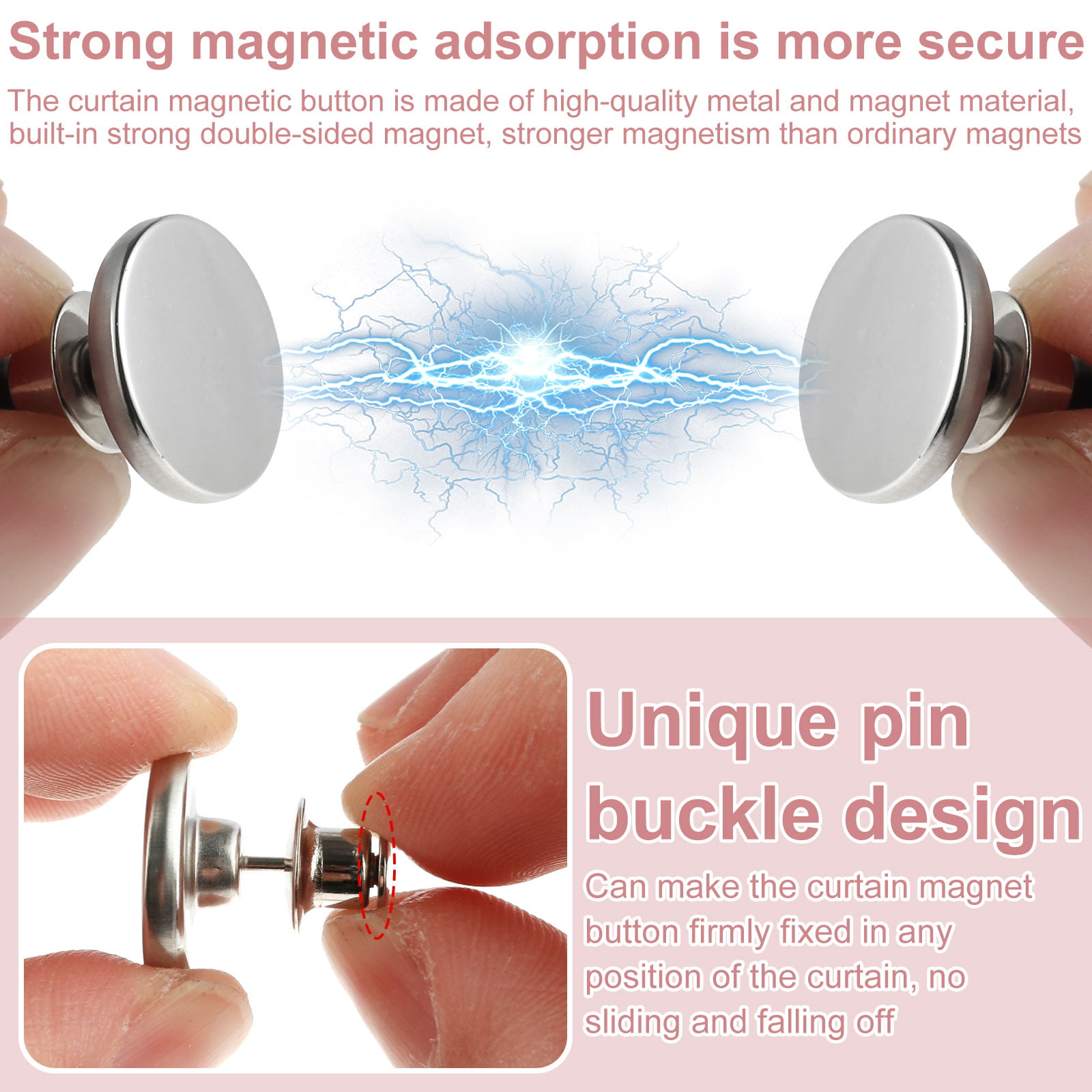- [Качествен материал] Тази катарама за завеси е изработена от висококачествен метал и магнитен материал, вграден силен двустранен магнит, по-добър магнетизъм, може да фиксира завесата по-добре, без да се плъзга.