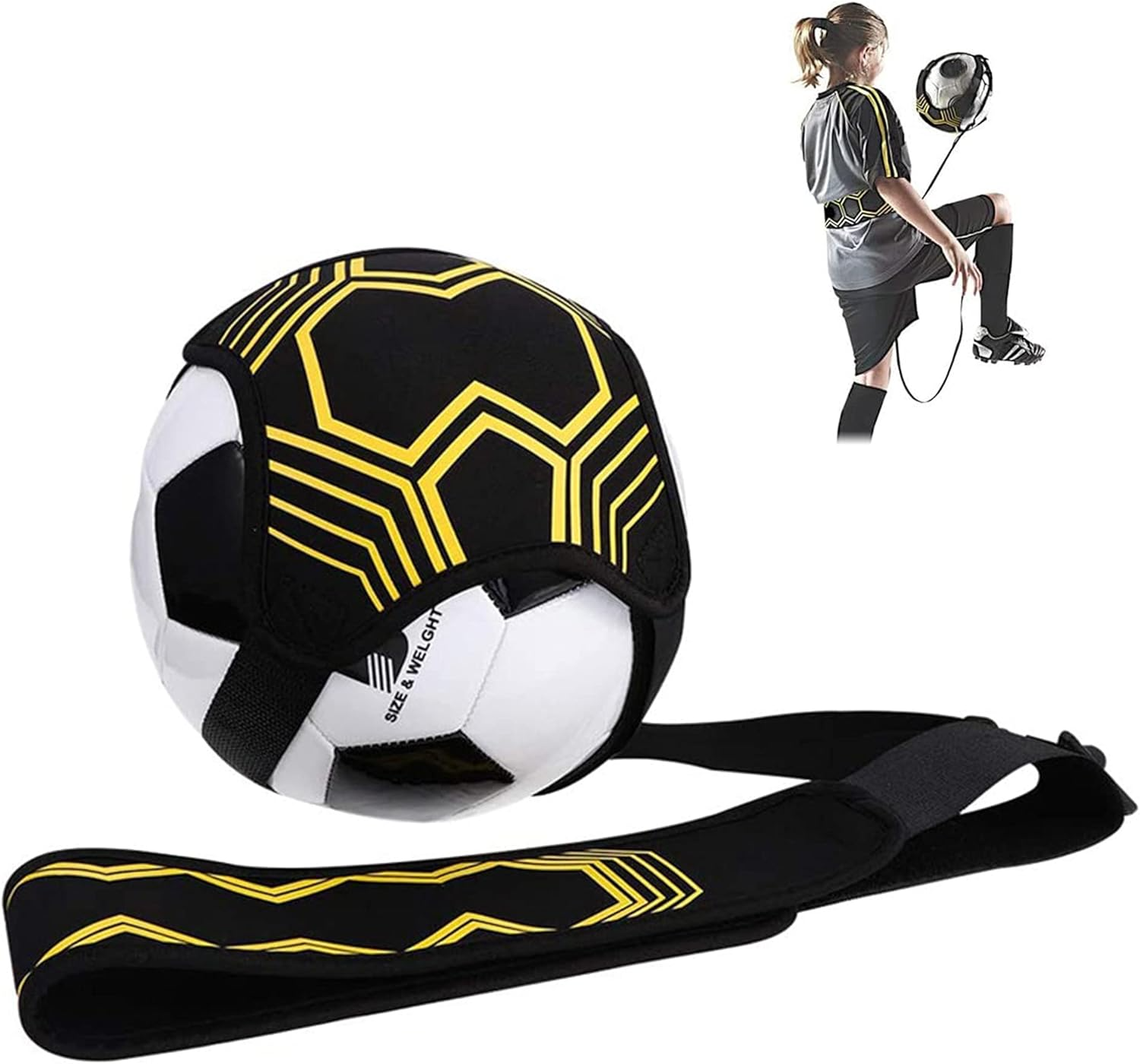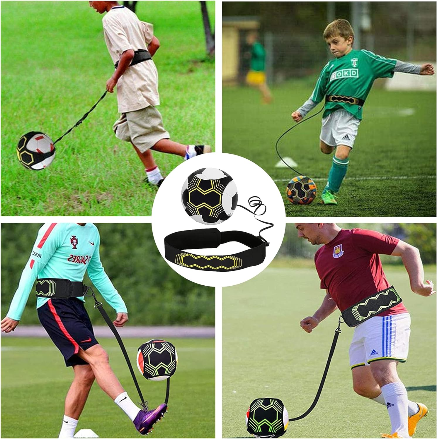 - Регулируем колан с въже с топка, статична дължина около 2 м, разтегателен 2-12 м, 0,8 см еластична лента + 2,5 см магическа фурнир топка с ширина 26x26 см, може да увие топки #3 / #4 / #5!!