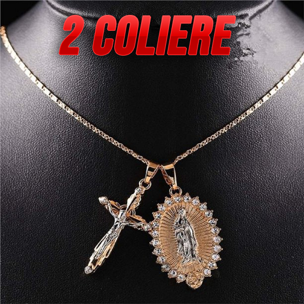 Колие Дева Мария + Разпятие на Исус Христос (1+1 ! 2 колиета на цената на едно)