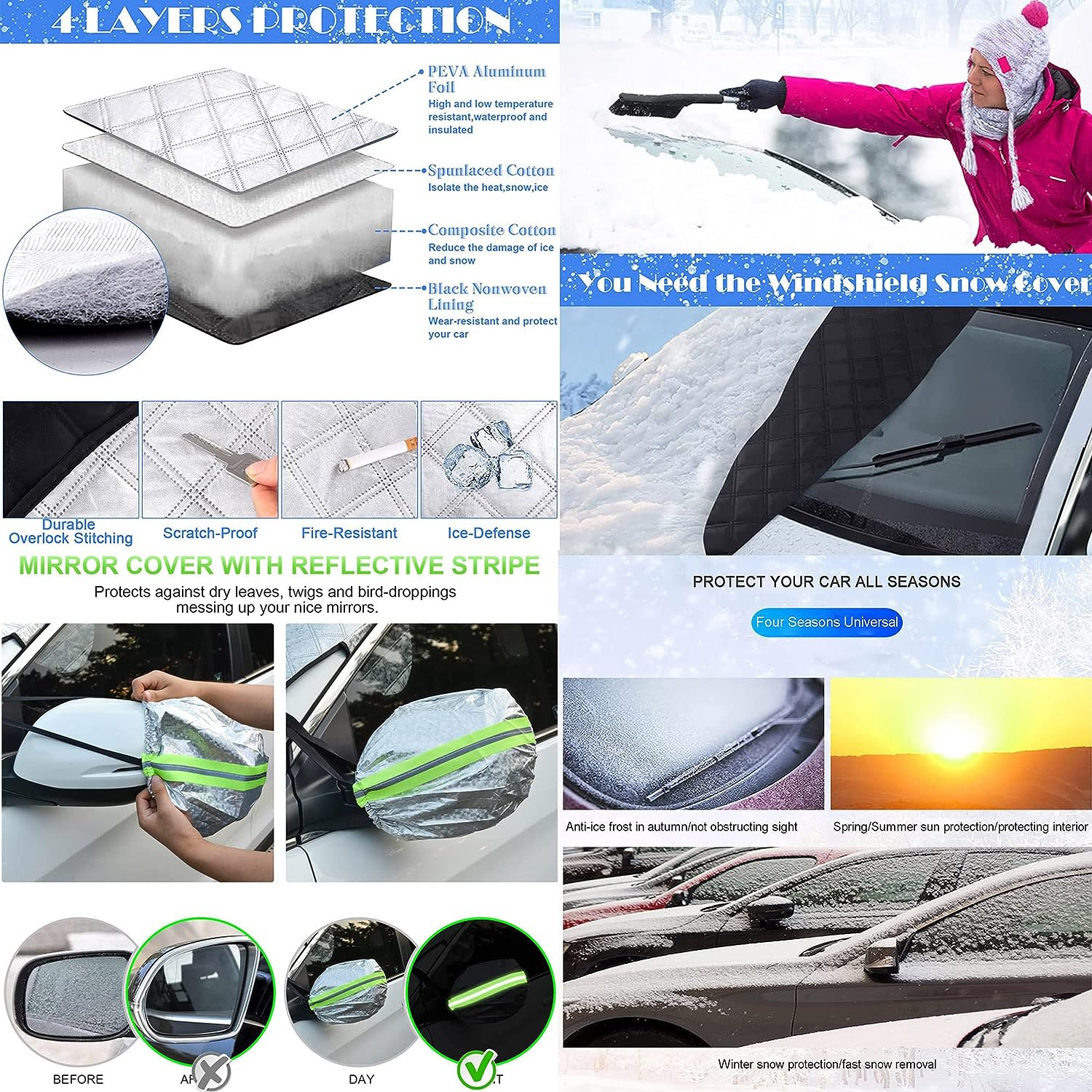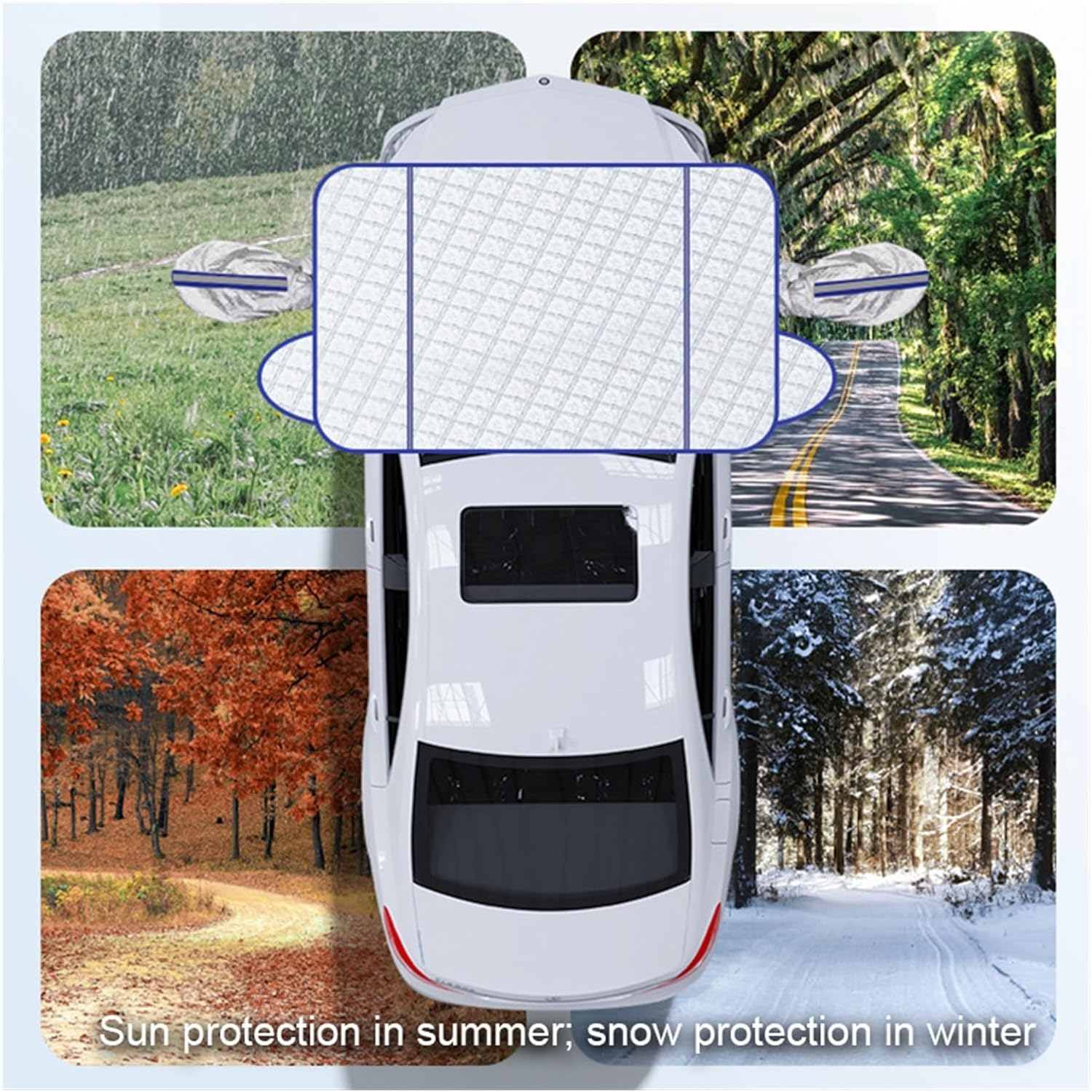 - ❄【Подходящо за използване през цялата година и при всякакви метеорологични условия】 Повърхностен слой от алуминиево фолио и висококачествен памук, забавящ горенето отвътре, за да предпази предното стъкло на автомобила от скреж и прах през пролетта, сняг и лед през зимата, UV лъчи на слънцето през лятото, листата през есента.