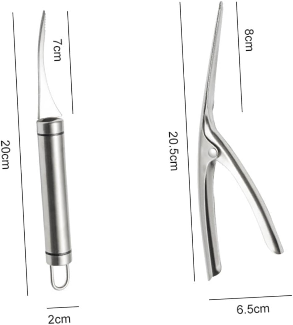 - 【Разнообразие от приложения】 Комплектът инструменти за морски дарове може да премахва струните на скаридите, да изкормва, да почиства варени скариди, сушени скариди и раци, може да се използва и за рязане на корема на риба, всички тези сложни задачи сега са оставени на този деликатен нож, може да изпълнява всички тези задачи перфектно