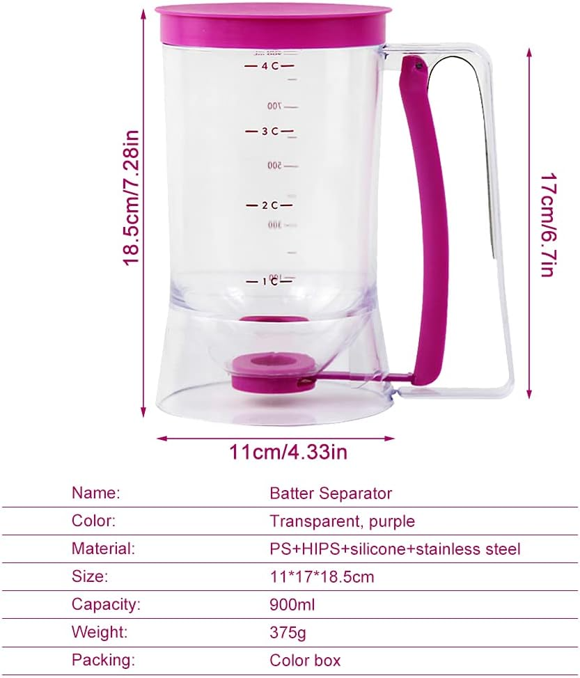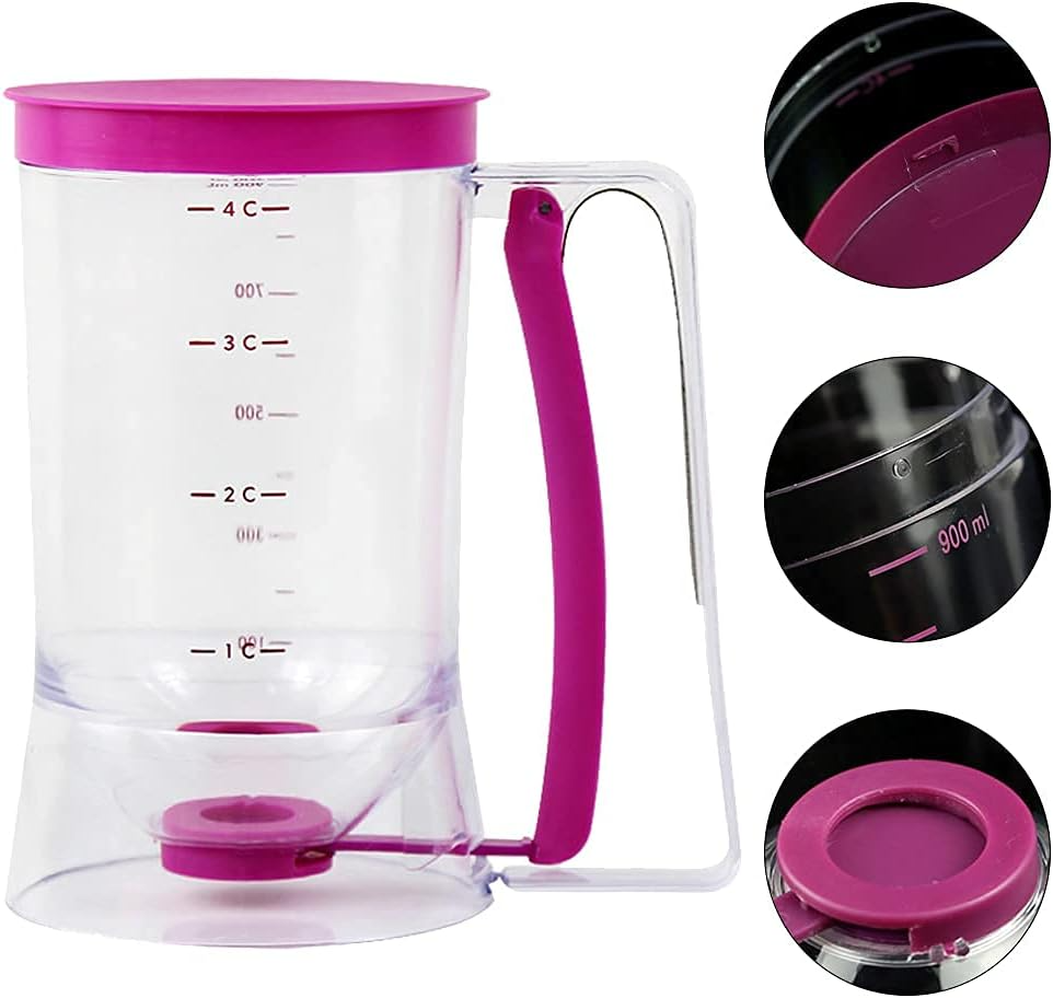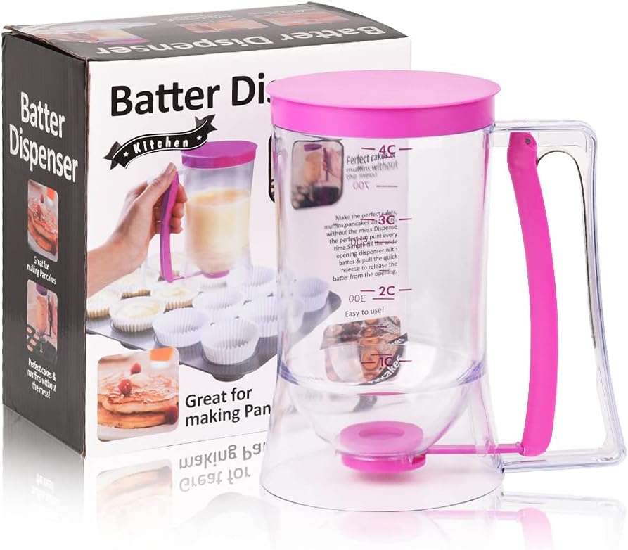 - ЛЕСНО ЗА ПОЧИСТВАНЕ: Просто дръжте внимателно дръжката, за да разпределите тестото равномерно. Издръжлив и лесен за почистване. Бункерът минимизира бъркотията и поддържа работната зона чиста. Перфектният кухненски инструмент за всеки. Направете наливането бързо и лесно