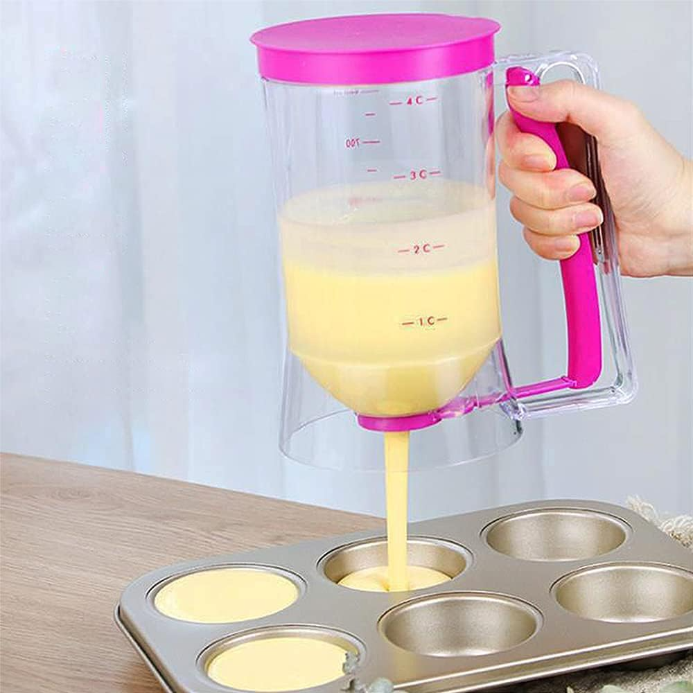 - УНИВЕРСАЛНОСТ: Дозатор за тесто, можете бързо, просто и прецизно да поставите течното тесто върху тавата на фурната. Перфектен за приготвяне на мъфини, палачинки или вафли. Това е идеалният подарък за любителите на аксесоари за печене, готвачи, домакини, любители на понички и пекари.