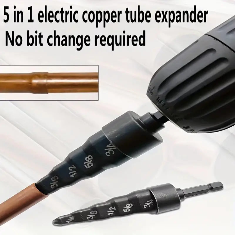 - 【 Удължителни тръби】Оборудван с 5 различни размера на свредлото (1/4 инча, 3/8 инча, 1/2 инча, 5/8 инча, 3/4 инча), този инструмент предлага голяма гъвкавост за адаптиране към различни размери на медни тръби, са подходящи за широк спектър от проекти.