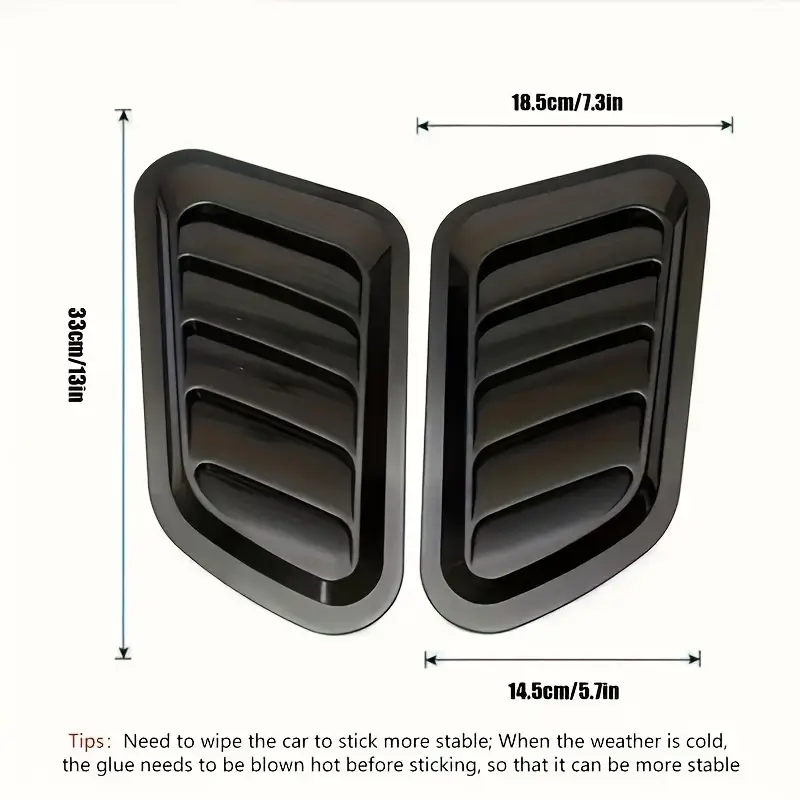 Преобразете външния вид на колата си с Breezio™ , комплекта от 2 капака за вентилационни отвори, създадени с първокласен лъскав черен дизайн. Изработени от издръжлив ABS, тези капаци не само подобряват естетиката на вашия автомобил, но и осигуряват допълнителна функционалност.