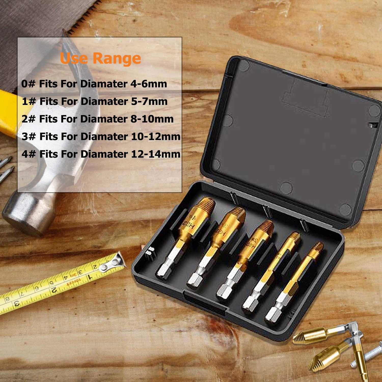 Отговаря на вашите нужди: Нашият счупен комплект за извличане на винтове включва 5 размера: 0#, 1#, 2#, 3#, 4#, съвместими с най-използваните винтови глави и винтове/болтове, за да отговори на ежедневните ви нужди. Предлагат се и в удобна пластмасова кутия, за да ги поддържате организирани.