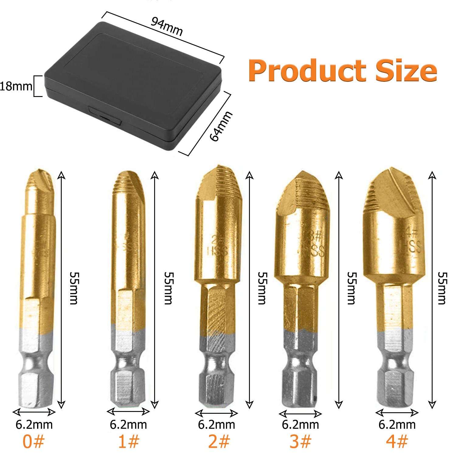 Първокласни материали: Този комплект от 5 счупени винтови екстрактора е изработен от високоскоростна стомана, което ви позволява да създадете повече възможности за изваждане на повредени винтове. Освен това има дълъг и прецизен дизайн на резбата за удължен живот.