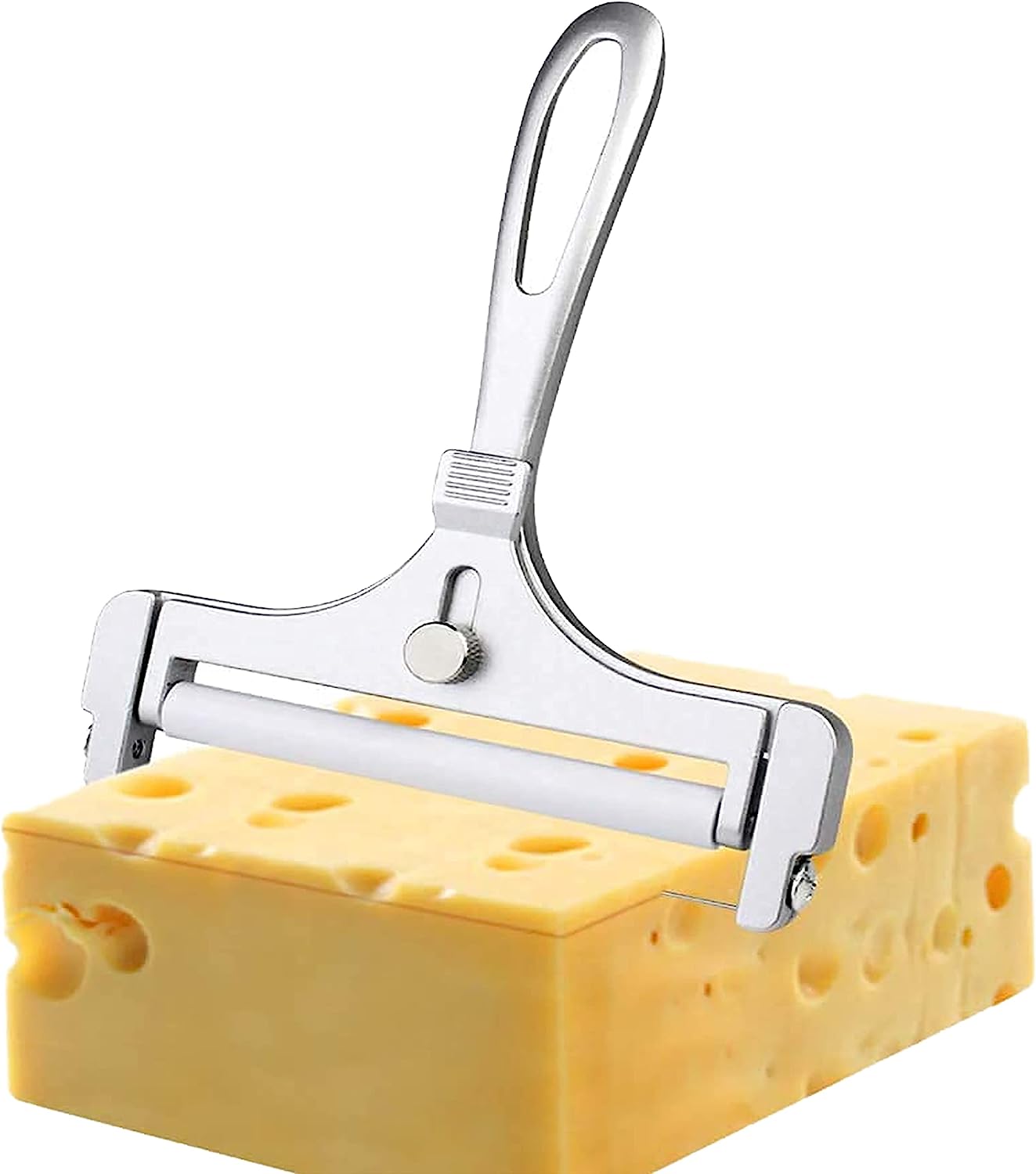- Резачка за сирене Block Cheese: Спрете да пилеете пари за предварително нарязано сирене за вашите сандвичи! Телената резачка за сирене реже твърдо сирене като швейцарско сирене и сирене като масло. Има ширина ок. 5 инча/12 см, подходящ за повечето блокове сирене.