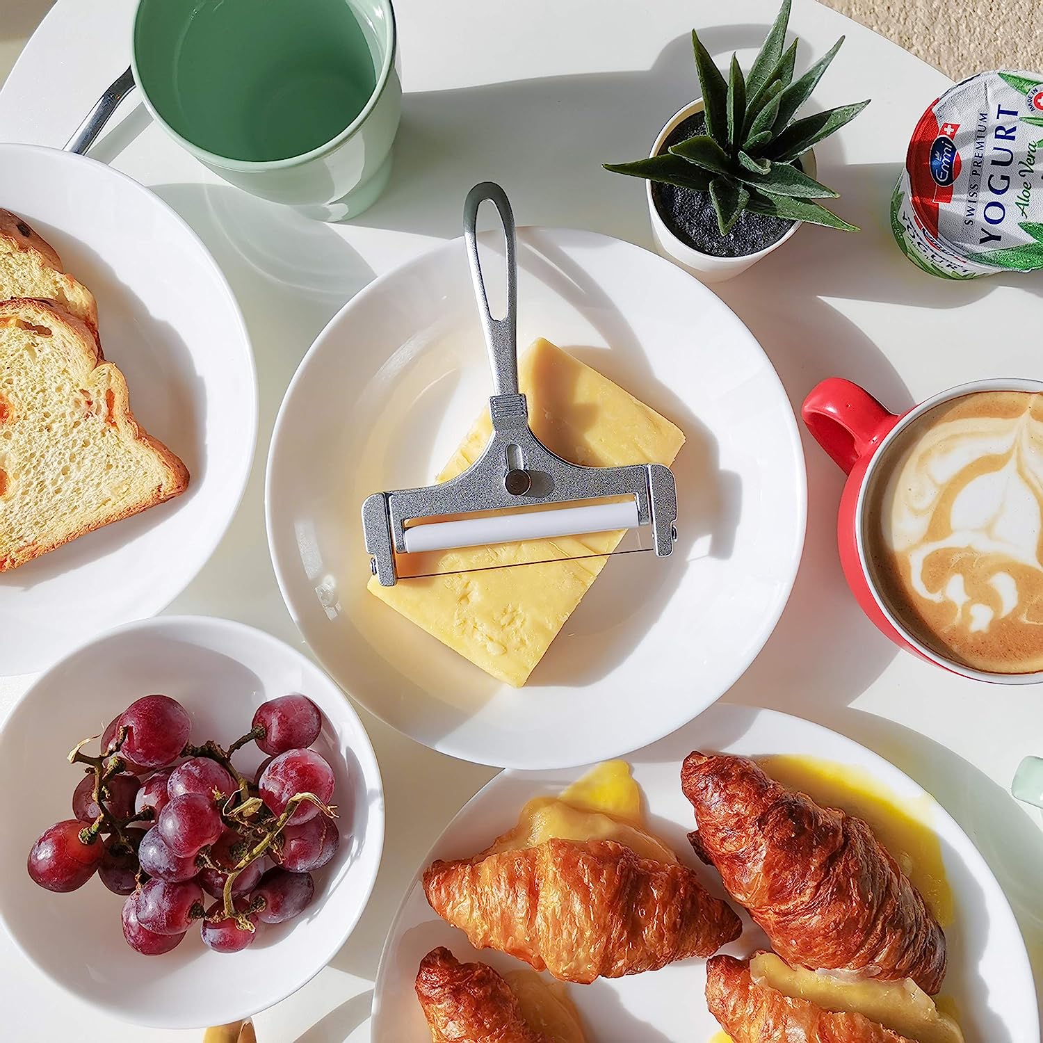 - Здрава телена резачка за сирене: Телената резачка за сирене е изработена от неръждаема стомана 304, не се деформира или счупва лесно. Твърдата цинкова дръжка има първокласен вид и може да се мие в съдомиялна машина или просто да се почиства със сапун и чиста вода.