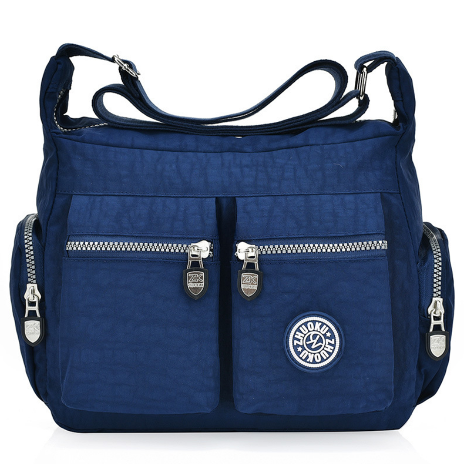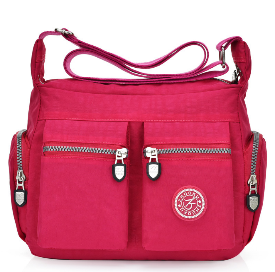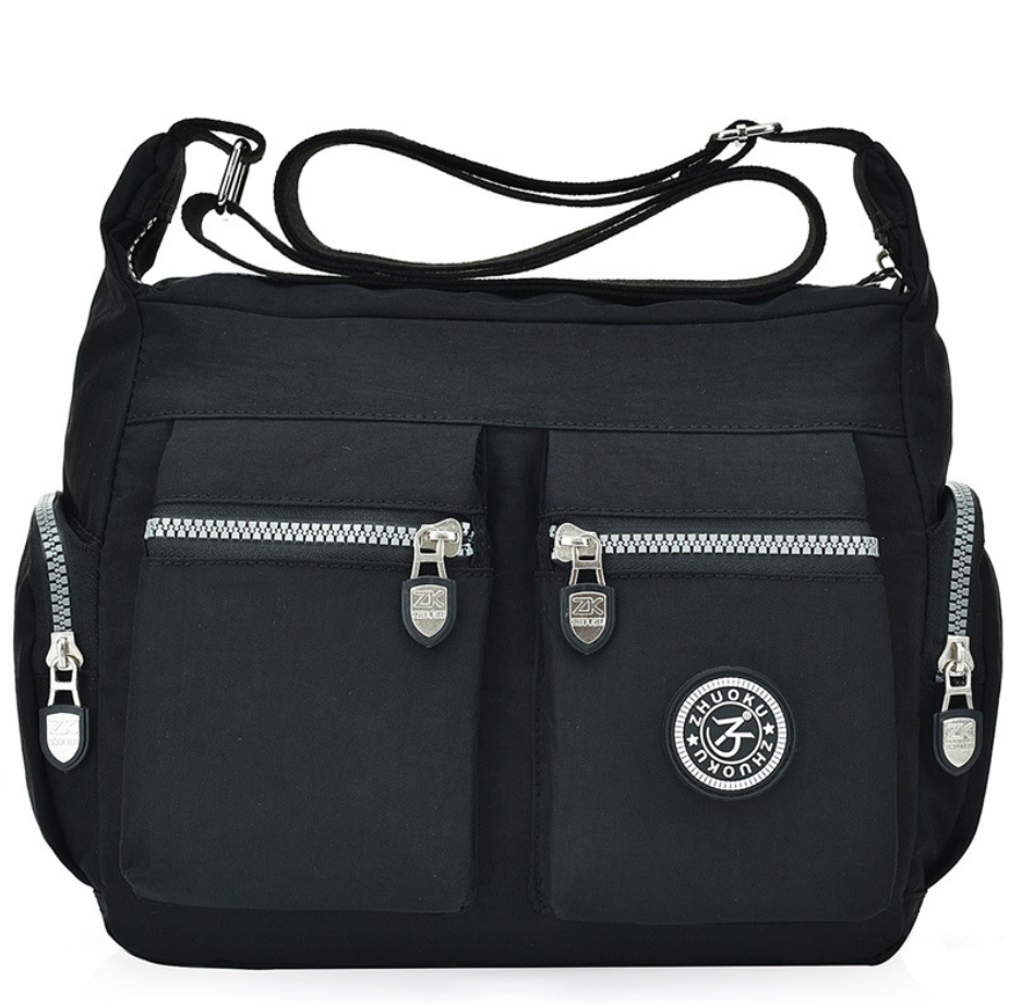Представяме Ви дамската ежедневна найлонова чанта за през рамо с много джобове - най-добрият аксесоар за модерната жена в движение. Тази универсална чанта е изработена от издръжлив найлон, който гарантира, че може да издържи на ежедневно износване. Има множество джобове, включително основно отделение с цип и допълнителни джобове отпред и отстрани, за да поддържате нещата си организирани и лесно достъпни.Дизайнът на чантата за рамо позволява удобство без ръце, идеално за пазаруване или навигиране в града. регулируемата презрамка може да се носи през гърдите или през раменете, в зависимост от вашите предпочитания. А за онези моменти, когато искате да носите чантата като традиционна чанта, дръжката предлага алтернативна опция за носене.