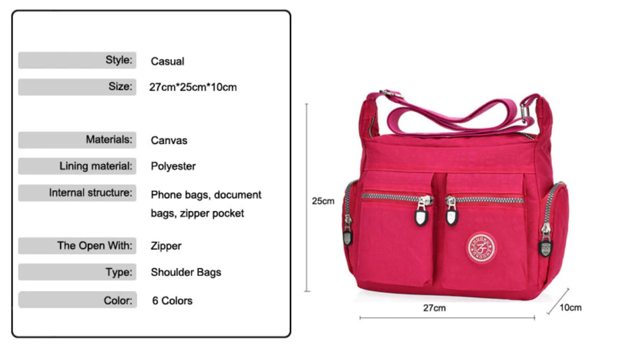 Освен практична, тази чанта за през рамо е и стилна. Неговият елегантен дизайн и неутрален цвят го правят универсален аксесоар, който може да се комбинира с различни тоалети. Независимо дали отивате на работа, пазарувате или излизате на ежедневна разходка, тази чанта ще се превърне във ваш любим аксесоар. Така че защо чакаш? Разширете играта си с аксесоари днес с дамската ежедневна найлонова чанта за през рамо с няколко джоба.
