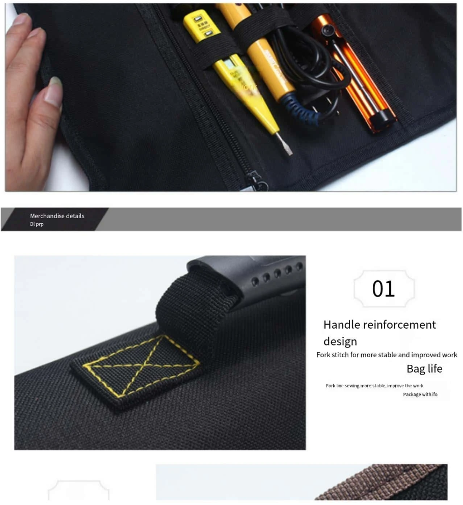 Издръжлив материал: Нашата чанта за инструменти е изработена от водоустойчив материал 600D Canvas, който е много здрав и издръжлив, идеален за носене на ръчни инструменти и други малки и средни предмети.
