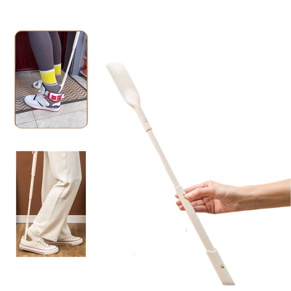 - 【ИЗДЪЛЖИВА ЗАКАЧАЛКА ЗА ОБУВКИ】 - Нашата дълга закачалка за обувки е изработена от пластмаса и няма да се огъне, изкриви или ръждясва. Всеки ръб на пирона за обувка има гладка, полирана повърхност, за да се предотврати закачането на чорапите. Предотвратява пропадане или деформация на петата. Прибиращ се пирон за обувка: Дължината на пирон за обувка с дълга дръжка може да се регулира на произволна дължина между 71 cm и 41 cm. С много дълги дръжки можете да обуете обувките или ботушите си седнали или изправени, без да се навеждате.