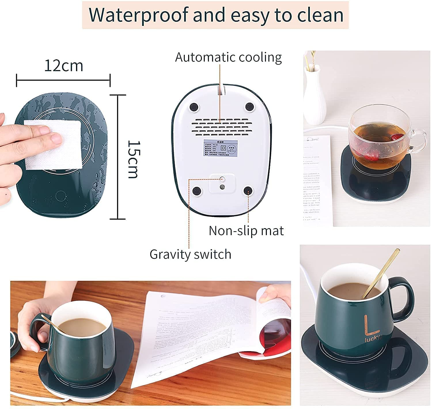 - Безопасен и надежден: Благодарение на технологията за микрогравитация, този нагревател за чаши може да се изключва/включва автоматично. Само като поставите чашата, нагревателят за кафе ще работи, а като вземете чашата, нагревателят автоматично ще се изключи. Теглото на чашата трябва да е над 0,8 фунта (13 унции), за да се активира превключвателят за гравитационна индукция.
