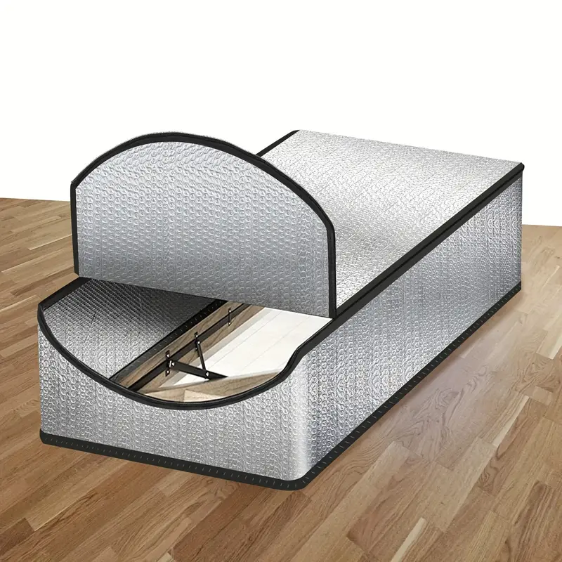 С дебел слой топлоизолационни мехурчета между два слоя отразяващо алуминиево фолио, това покритие за таванска врата е здраво, устойчиво на огън и влага.