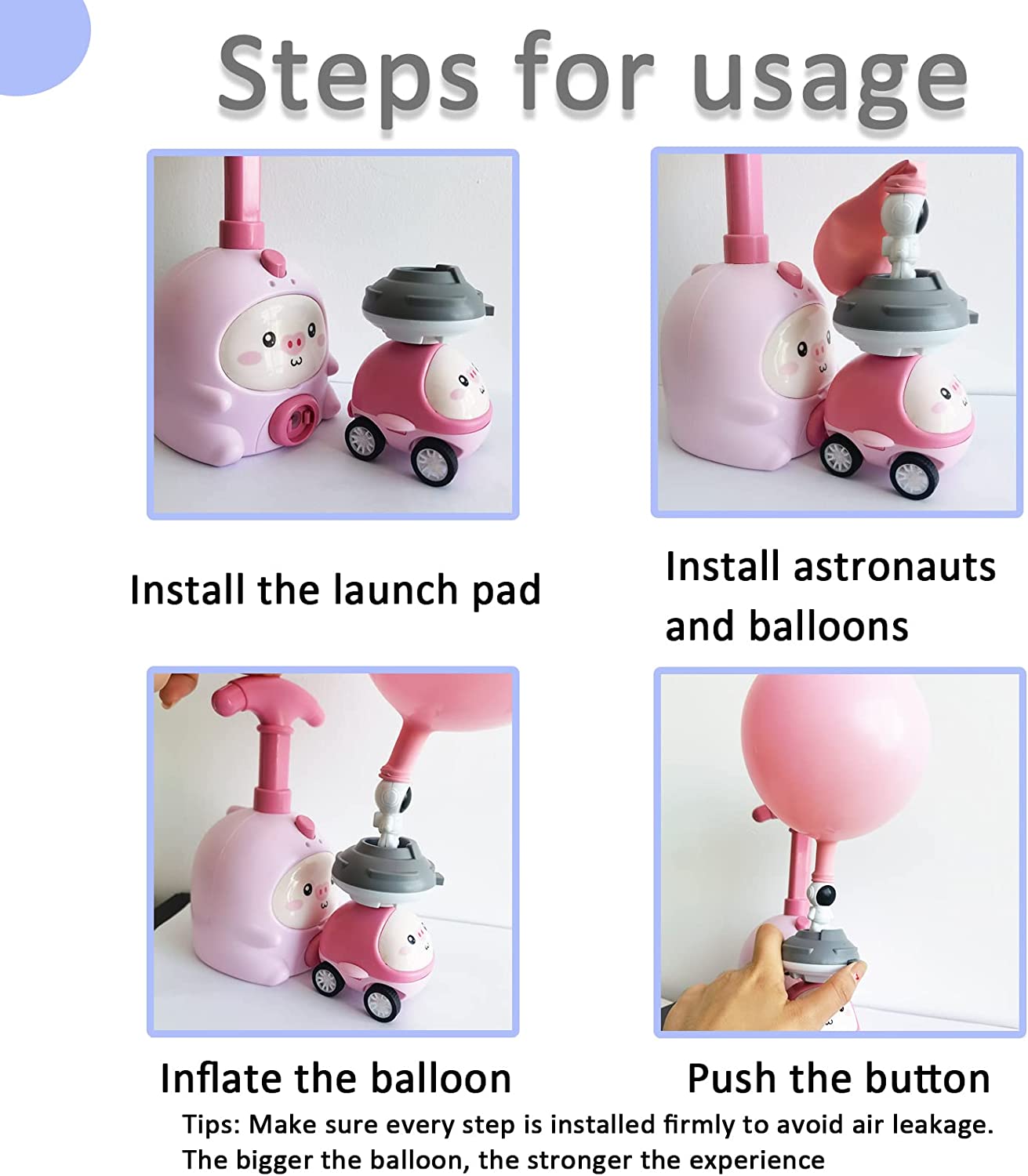 - Мултифункционален дизайн: няма нужда от захранване, чрез аеродинамично триене за управление на играчките, бутон с едно докосване за активиране на колата, за да тича напред, носене с помпа за балон и изстрелващо устройство, за да накарате балона да лети едновременно, което го прави привлекателен на децата.