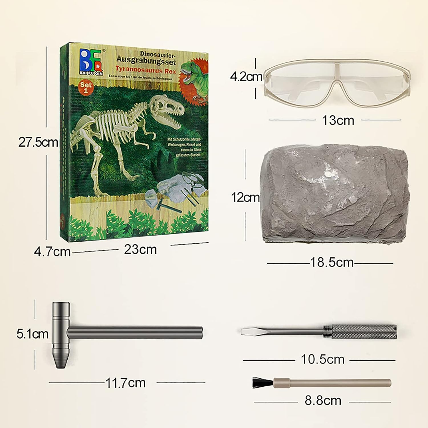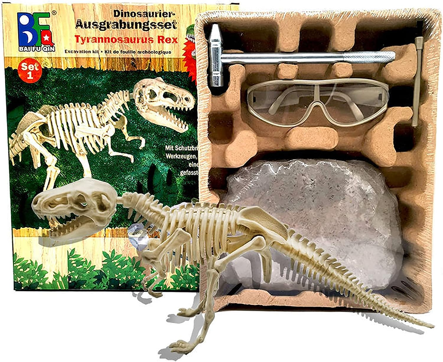 - > Пълен комплект за копаене: Този комплект за копаене на изкопаеми динозаври включва всичко необходимо, за да занимавате децата с часове, включително длето, четка и бутилка за очила за всяка възраст!