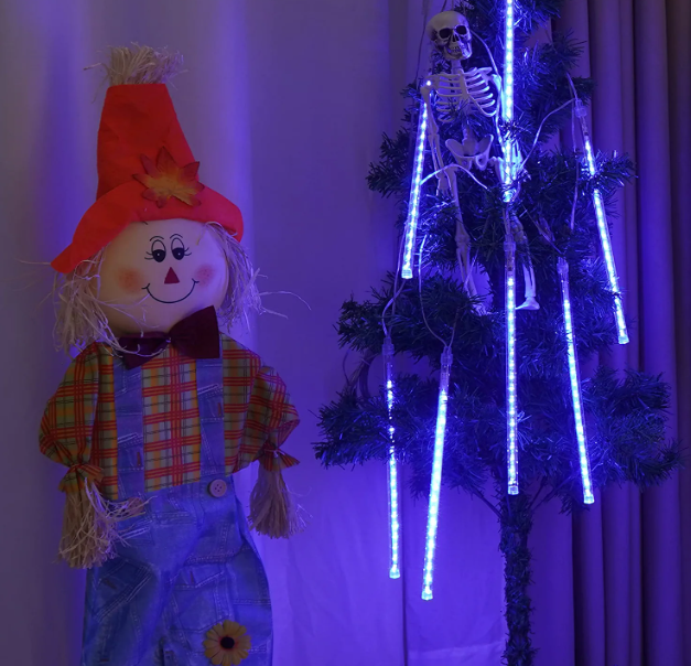 - Уникален дизайн: 8 30 см тръби, 180 LED ефект на метеорен дъжд с романтична естетика, светлината на всяка крушка се включва и изключва една по една последователно и бързо, точно като метеорен дъжд или сняг, падащ в нощното небе, невероятен каскаден ефект за вътрешен двор , градина, морава, дърво, празнична украса