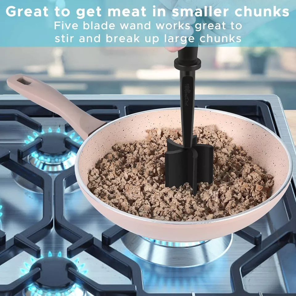 - УСТОЙЧИВ НА ТОПЛИНА >> Машърът за месо е направен от найлон за храни, който е устойчив на топлина до 430 градуса по Фаренхайт; Безопасен е за използване върху всички видове съдове за готвене, включително незалепващи и с покритие.