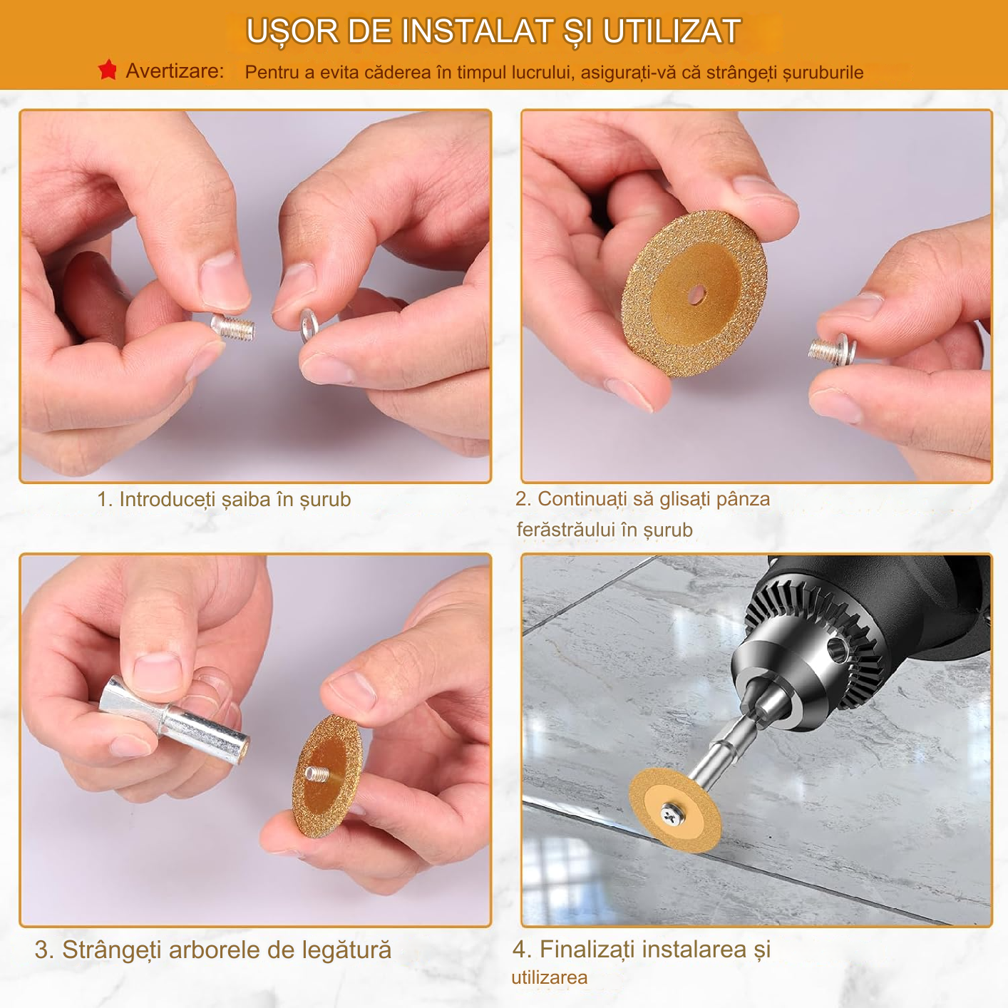 - [Издръжлив диамантен материал] Нашият мини диамантен режещ диск използва висококачествено спояване, което е по-безопасно и няма да се деформира или счупи по време на употреба. Той е издръжлив и остър с дълъг експлоатационен живот.