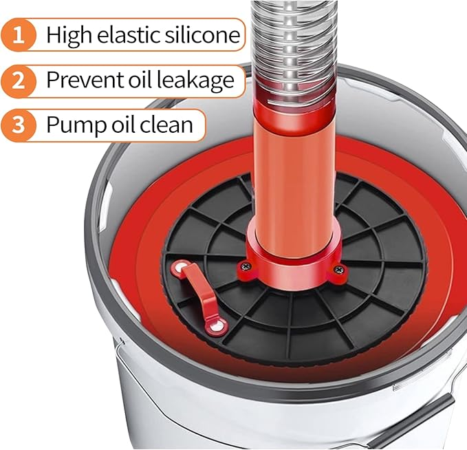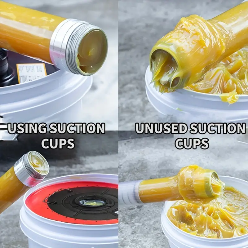 • Как да използвате : Поставете тавата в контейнера за грес, извадете цилиндъра от помпата за грес, залепете го върху смукателната тава и натиснете тавата, за да извлечете маслото. Накрая отстранете пълния с масло цилиндър на помпата за грес.