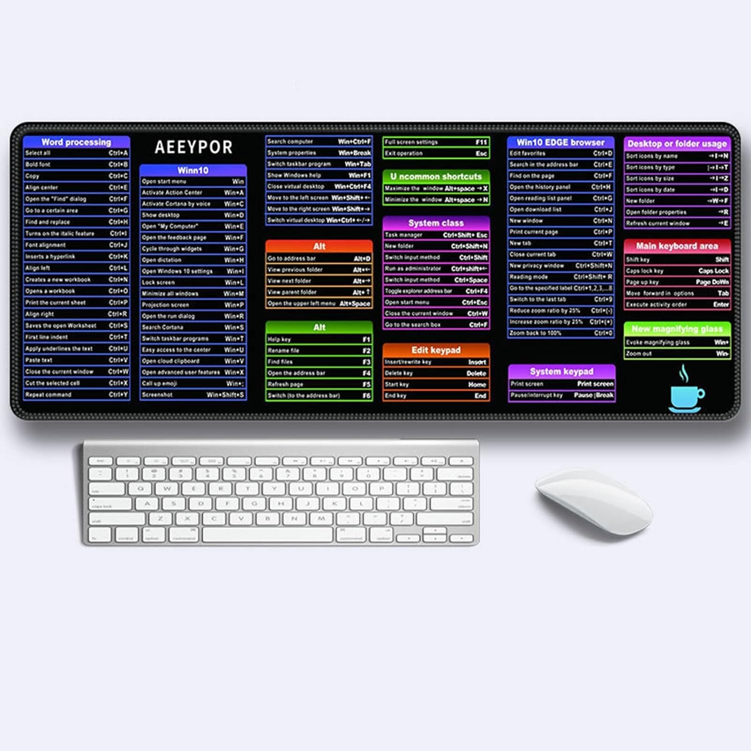 - 【Супер голям бърз клавиш против приплъзване】 Супер голям бърз клавиш против приплъзване Клавиатурата е проектирана с модел на бързи клавиши за офис софтуер, който е лесен за четене и използване. Този модел позволява бърз и лесен достъп до често използвани команди и функции. Моделът на бързите клавиши също помага за намаляване на времето, прекарано в търсене на правилния клавиш, и прави използването на клавиатурата по-ефективно.