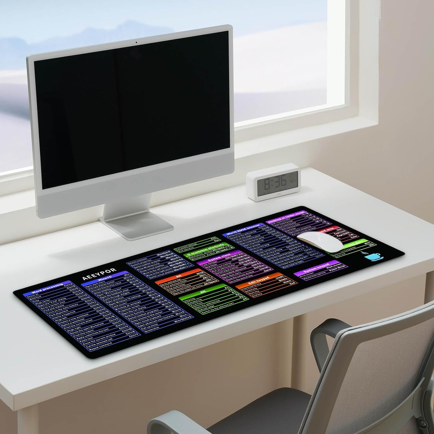 - 【Премиум материал】 Подложка за мишка за игри, която използва естествен каучуков материал с висока еластичност, тази подложка за мишка ще ви осигури максимален комфорт при използване. Процесът на печат с висока точност гарантира, че шаблонът на клавишите за бърз достъп е ясен и видим, което го прави по-лесен за използване.