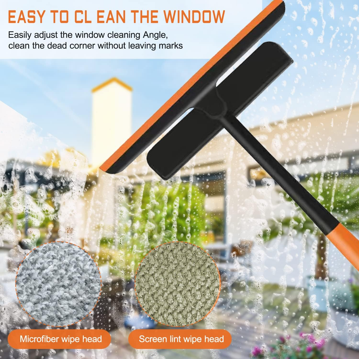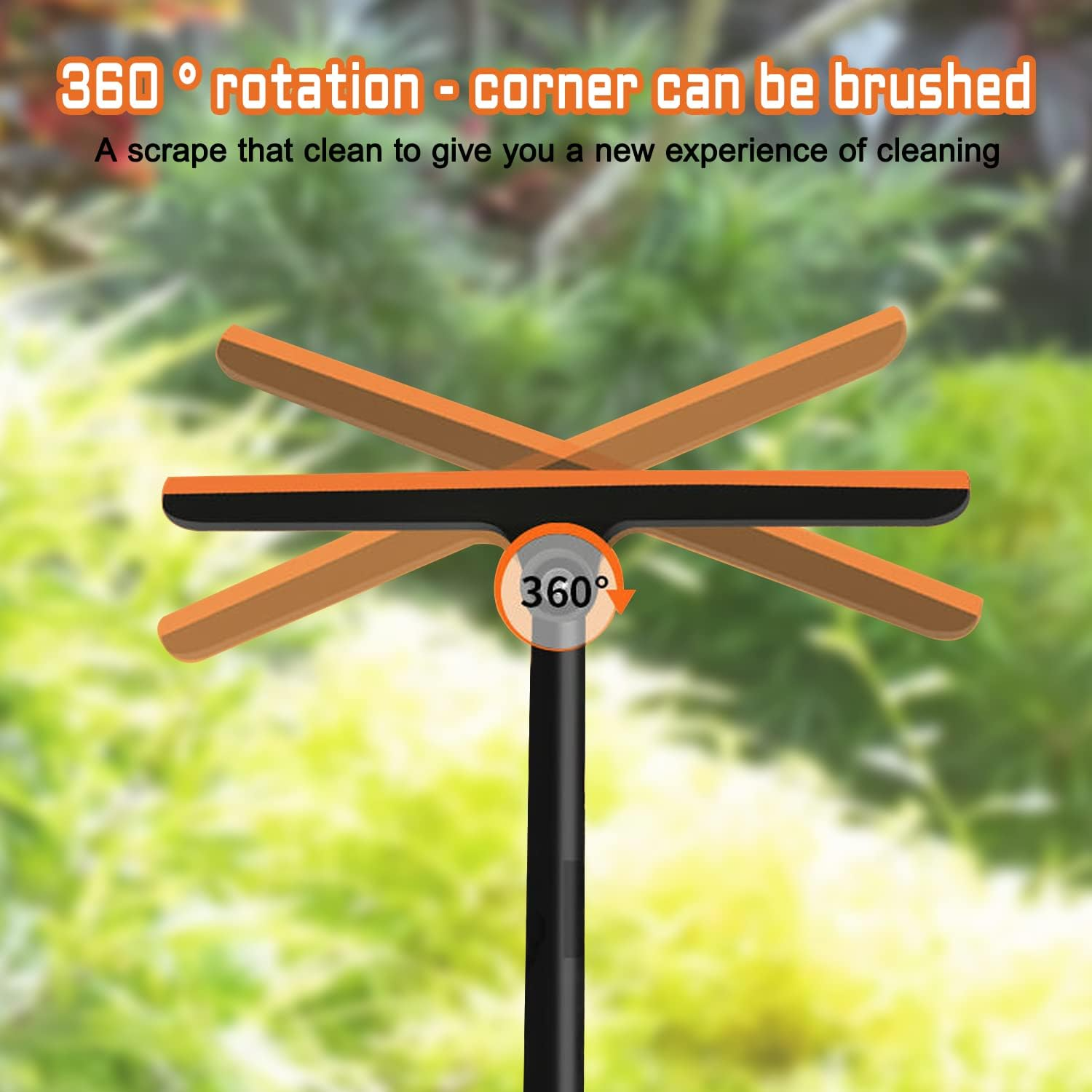 - 【360 градуса без мъртви точки】: Главата на чистачката може да се върти на 360 градуса, лесно може да ви помогне да изстържете ъглите или пукнатините, които обикновено не можете да почистите. Перфектният инструмент за почистване на ъглите и пролуките на вашите прозорци.