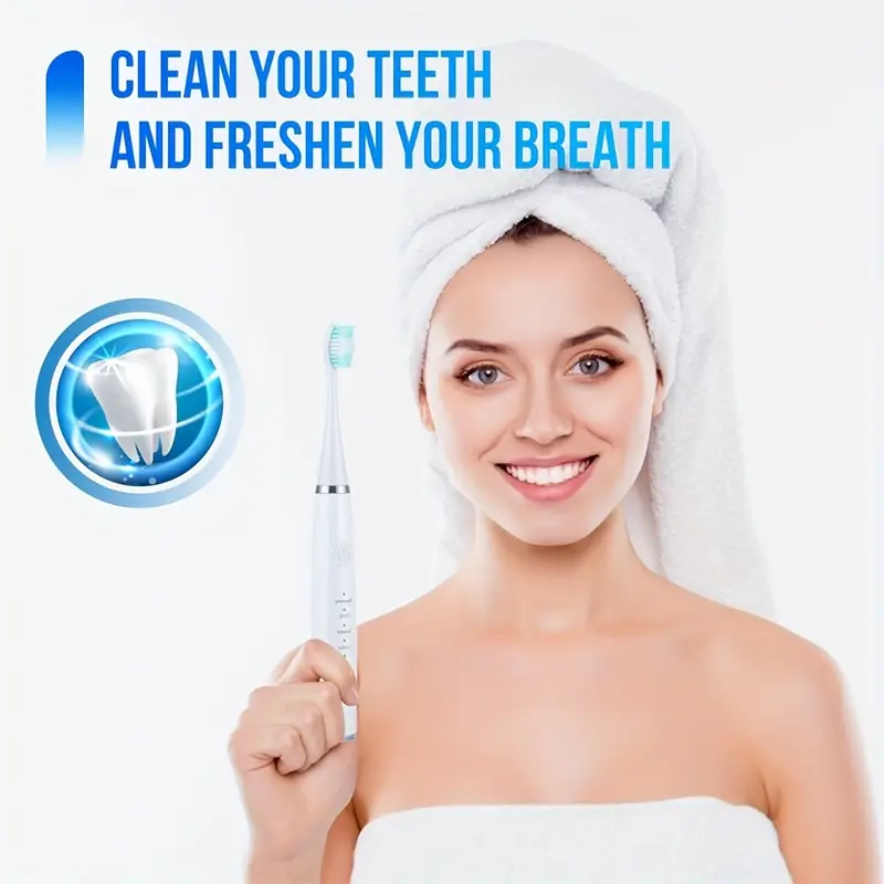 Ефективно почистване със звукови вълни: Това е електрическа четка за зъби от последно поколение. Ефективно почиства с помощта на технология със звукова вибрация по линията на венците, премахва над 99% от плаката и избелва зъбите. Оралното здраве ще се подобри само за 2 седмици в сравнение с ръчното четкане.