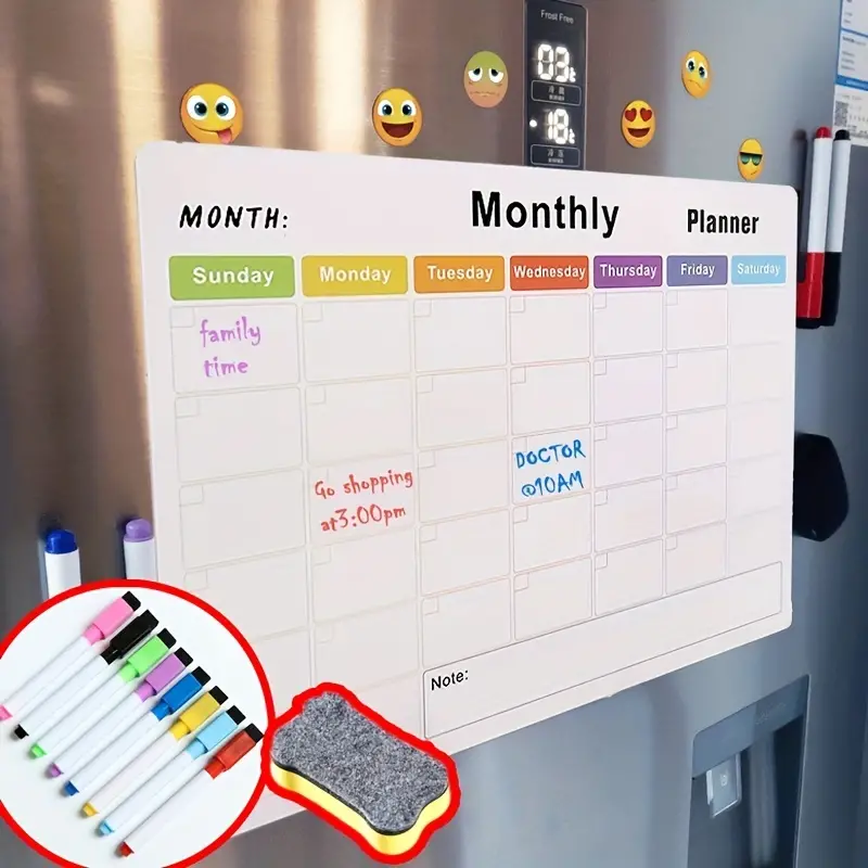 Изключителният магнитен дизайн ви позволява лесно да прикрепите планера към хладилника или други железни повърхности, без да се налага да търсите допълнително място за окачване или да пробивате дупки в стената. Това запазва целостта на вашите стени.