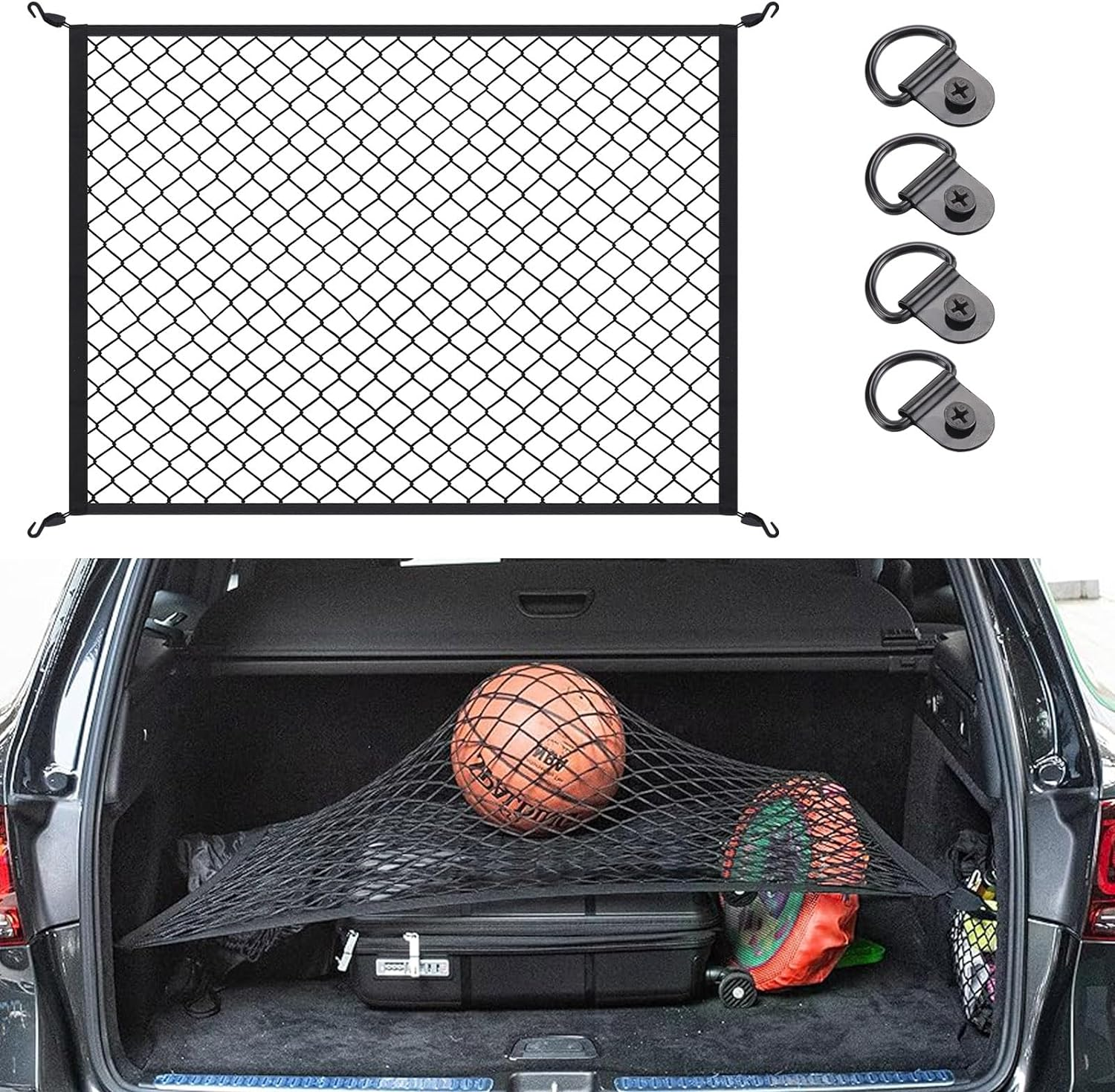 🚗 Превъзходно качество - Мрежата за товар zxbaers е изработена от висококачествен материал, съчетаващ полиестер, найлон и еластична кожена лента, която е здрава, издръжлива и разтеглива. Това е перфектен инструмент за организация на багажника.
