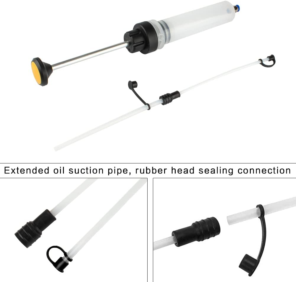 - РАЗЛИЧНИ ПРИЛОЖЕНИЯ: Маслената помпа със спринцовка може да се използва за добавяне и отстраняване на течности в различни случаи, като хидравлична охлаждаща течност, трансмисионно масло, хидравлични системи, вода, течност за кормилно управление и други течности. Подходящо е за извличане или замяна на двигателно или смазочно масло в автомобили, кораби, селскостопанско оборудване, индустриални скоростни кутии, косачки, мотоциклети, каравани и др. Помпата за извличане на течности е проектирана да ви осигури лесен и бърз метод за смяна.