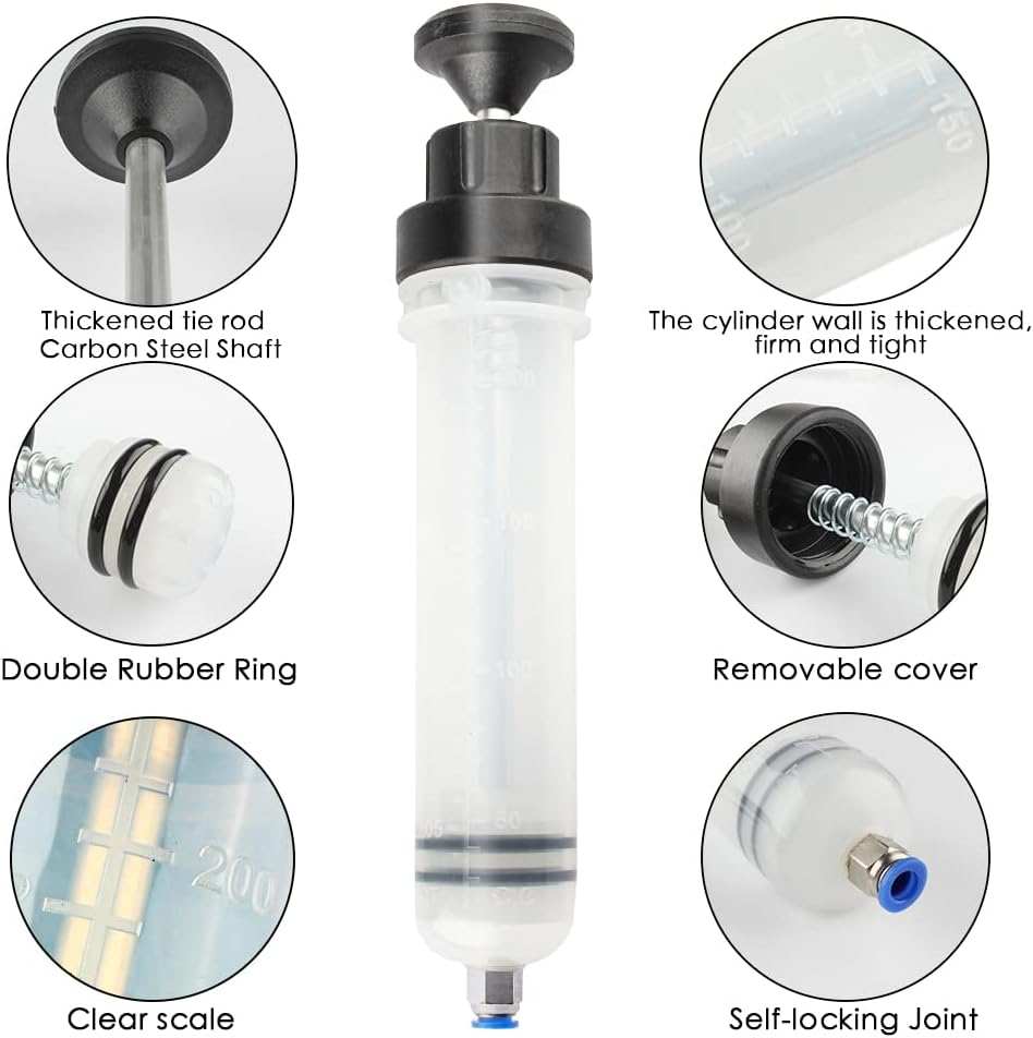- ПРЕВЪЗХОДНИ МАТЕРИАЛИ: Автомобилният екстрактор за течности е изработен от издръжливи и антикорозионни материали, а буталния прът е изработен от дебел алуминий, което го прави трудно да се счупи по време на употреба. Двойните гумени уплътнения прилягат плътно към буталото, за да се избегне изтичане, а удебеленият слой на стената е труден за проникване, като по този начин се осигурява безопасност на горивото и удължен експлоатационен живот.