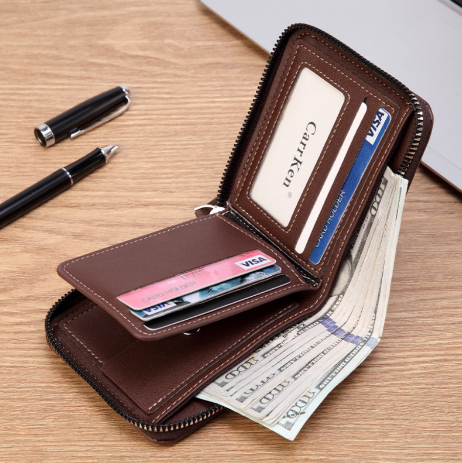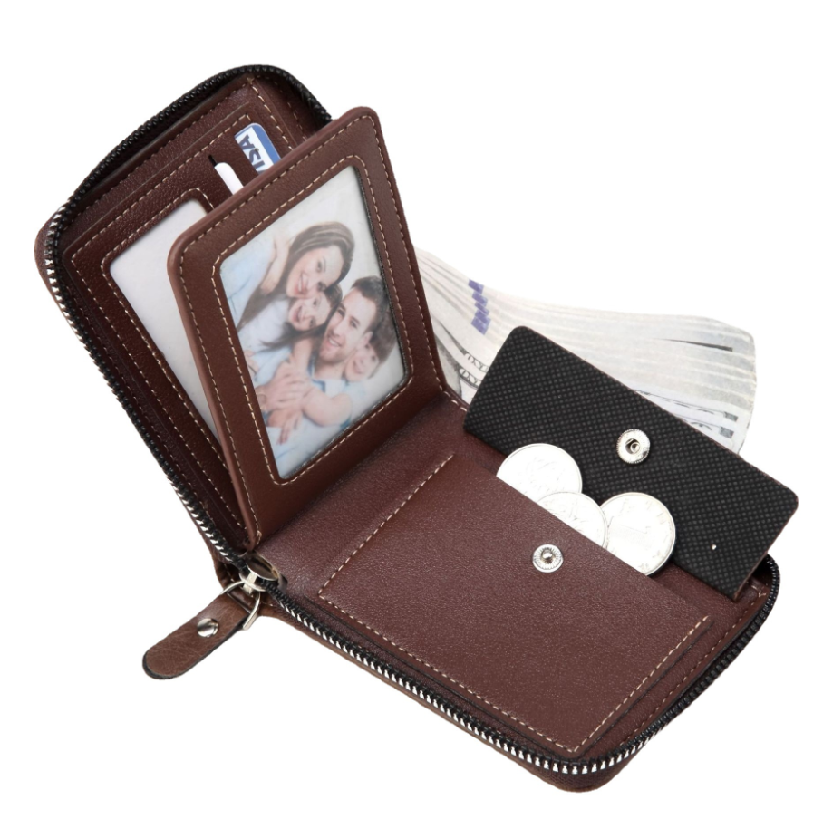 Мъжките портфейли имат множество вътрешни отделения за карти и джоб за монети или други дребни предмети.