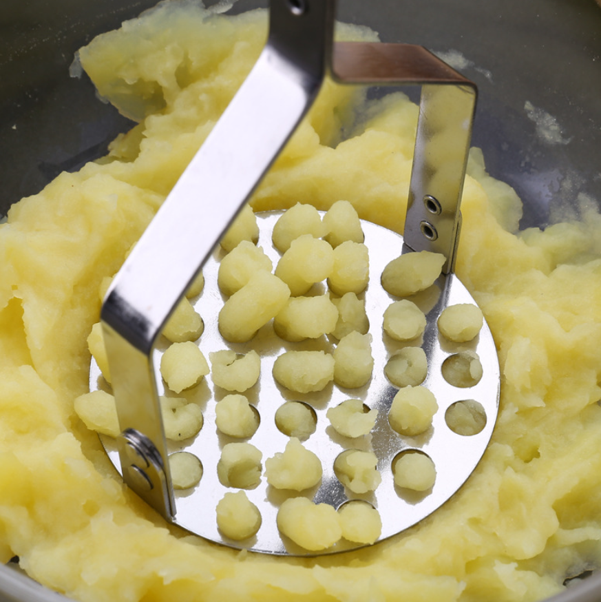 - Преса за картофи от неръждаема стомана: Пресата за картофи от неръждаема стомана е устойчива на киселини и основи, устойчивост на корозия, устойчивост на корозия, здрава и здрава. безопасен срещу ръжда.