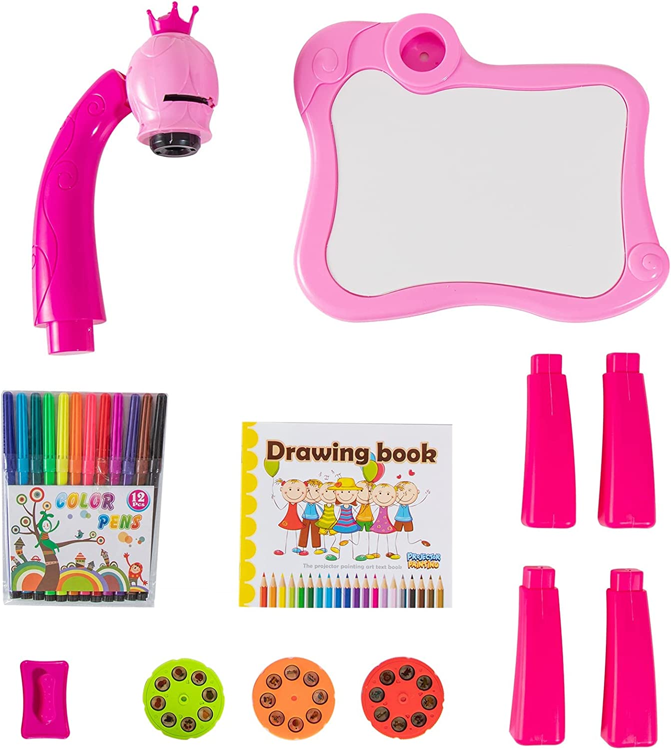 [Опаковка]: Продуктите са с високо качество и ниска цена. Списъкът с продукти е: изобилие от аксесоари, 12 безплатни цветни химикалки, 3 прожекционни карти, 1 хартия за рисуване, 1 гумичка.