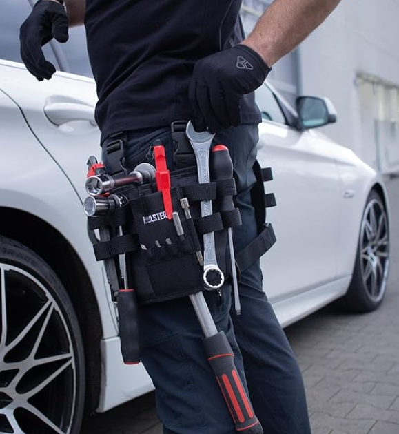 • Множество примки за инструменти: Включва примки, оптимизирани да държат както големи, така и малки инструменти, заедно с 4 държача за битове и примка за удължители или дърводелски молив.