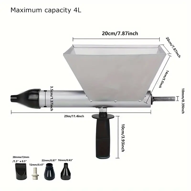 Преносимата пръскачка за хоросан е предназначена да подобри ефективността и лекотата на запълване на фуги и пукнатини с различни материали като циментова замазка, шпакловка на прах, силикон или други уплътнители. Това е идеален инструмент за малки строителни работи или проекти за вътрешно и външно озеленяване.