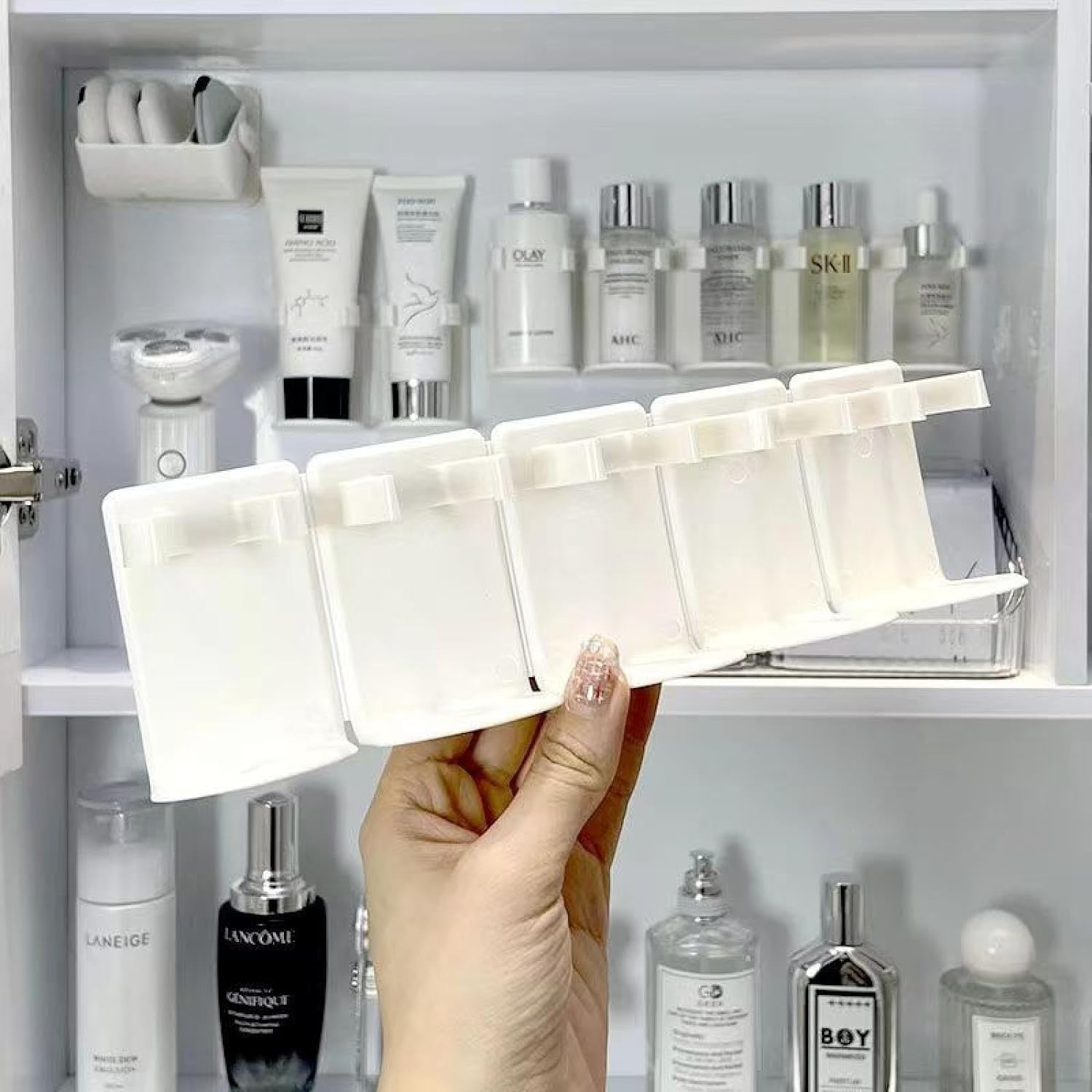 - Този рафт съдържа не само почистващи продукти за лице, но и кремове за ръце, серуми и други продукти за грижа за кожата. Поддържайте организирано ежедневието си.