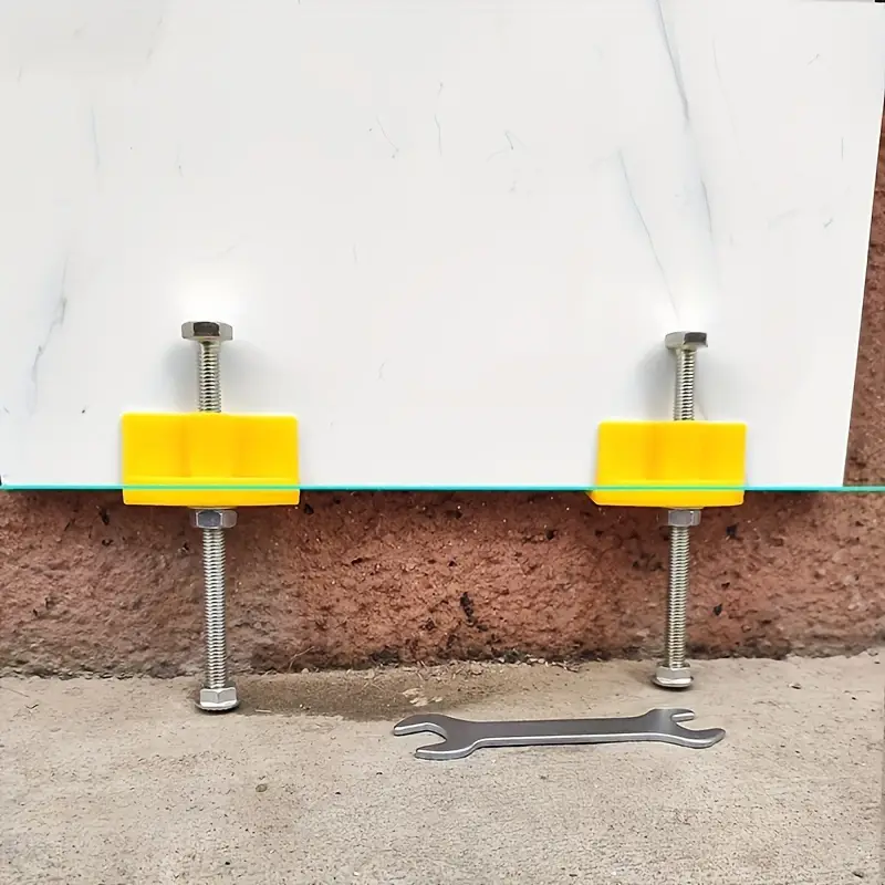 Регулаторът на плочите позволява свободно регулиране на височината, предотвратявайки плъзгането на плочите по време на монтаж. Основната плоча, изработена от удебелена и разширена стомана, осигурява стабилност дори върху неравни повърхности.